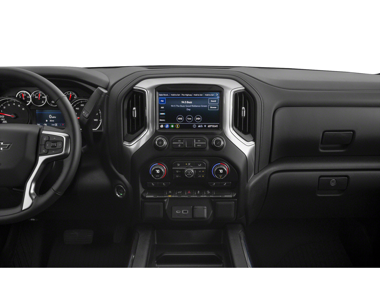 ENGINE, 6.2L ECOTEC3 V8 (420 hp [313 kW] @ 5600 rpm, 460 lb-ft of torque [624 Nm] @ 4100 rpm); featuring all-new Dynamic Fuel Management that enables the engine to operate in 17 different patterns between 2 and 8 cylinders, depending on demand, to optimize power delivery and efficiency, CONVENIENCE PACKAGE WITH BUCKET SEATS includes (A50) bucket seats, (D07) center console, (CJ2) dual-zone automatic climate control, (A2X) 10-way power driver seat including power lumbar, (KA1) heated driver and passenger seats, (KI3) heated steering wheel and (N37) manual tilt-telescoping steering column; Crew Cab models include (R7O) Cloth Rear Seat with Storage Package and includes (SNR) Up-level Rear Seat with Storage Package. CONVENIENCE PACKAGE II includes (UG1) Universal Home Remote, (A48) rear sliding power window, (KI4) 120-volt power outlet, (KC9) 120-volt bed-mounted power outlet, (IOS) Chevrolet Infotainment System with 8 diagonal color touch-screen with (MCR) USB ports, SiriusXM with 360L, (U2L) HD radio and (UVB) HD Rear Vision Camera Includes (UQA) Bose Premium Sound System.), SAFETY PACKAGE includes (UD5) Front and Rear Park Assist, (UKC) Lane Change Alert with Side Blind Zone Alert and (UFG) Rear Cross Traffic Alert (Includes Perimeter Lighting. LPO, ASSIST STEPS - 4 BLACK - ROUND, BED PROTECTION PACKAGE includes (B1J) wheel house liners and (CGN) Chevytec spray-on bedliner, AUDIO SYSTEM, CHEVROLET INFOTAINMENT 3 PLUS SYSTEM 8 diagonal HD color touchscreen, AM/FM stereo, Bluetooth® audio streaming for 2 active devices, Apple CarPlay® and Android Auto® capable, voice recognition, in-vehicle apps, cloud connected personalization for select infotainment and vehicle settings. Dealer upgradeable to embedded navigation. Subscription required for enhanced and connected services after trial period. TRANSMISSION, 10-SPEED AUTOMATIC, ELECTRONICALLY CONTROLLED with overdrive and tow/haul mode. Includes Cruise Grade Braking and Powertrain Grade Braking (STD), SEAT, UP-LEVEL REAR WITH STORAGE PACKAGE 60/40 folding bench for Crew Cab models, includes full-length bench seat, seatback storage on left and right side, center fold out armrest with 2 cupholders, full cab width underseat storage, (includes child seat top tether anchor). Non-Smoker vehicle