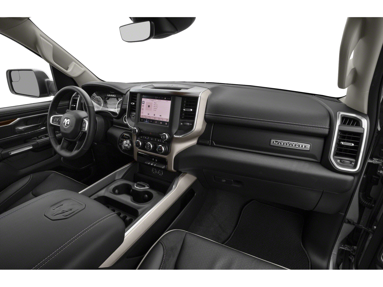 Heated Driver Seat, Cooled Driver Seat, Back-Up Camera, iPod/MP3 Input, CD Player Ram Laramie with Bright White Clearcoat exterior and Black interior features a V6 Cylinder Engine with 305 HP at 6400 RPM*.