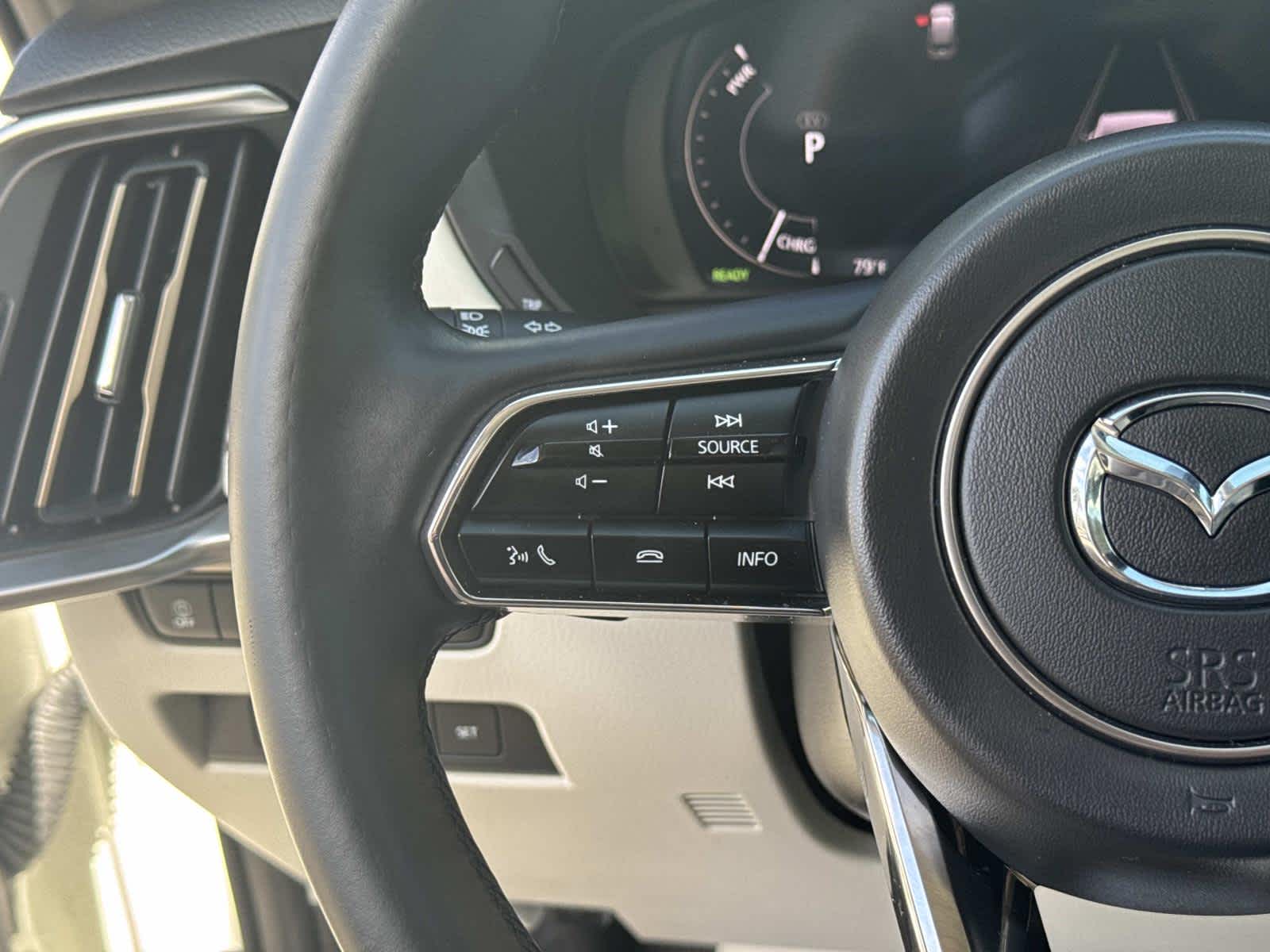 Leather Seats, Third Row Seat, Navigation, Sunroof, Panoramic Roof Mazda CX-90 PHEV Premium Plus with Rhodium White Premium exterior and White interior features a 4 Cylinder Engine with 323 HP at 6000 RPM*.